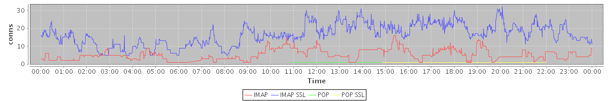 avg(IMAP) = 4.94 avg(IMAP SSL) = 16.41 avg(POP) = 0.00 avg(POP SSL) = 0.02