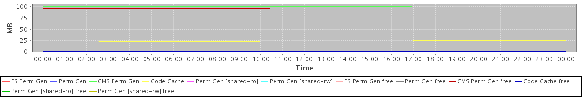 avg(PS Perm Gen) = 0.00 avg(Perm Gen) = 0.00 avg(CMS Perm Gen) = 100.52 avg(Code Cache) = 23.68 avg(Perm Gen [shared-ro]) = 0.00 avg(Perm Gen [shared-rw]) = 0.00 avg(PS Perm Gen free) = 0.00 avg(Perm Gen free) = 0.00 avg(CMS Perm Gen free) = 95.48 avg(Code Cache free) = 0.24 avg(Perm Gen [shared-ro] free) = 0.00 avg(Perm Gen [shared-rw] free) = 0.00