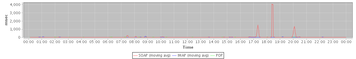 Host zm09.stanford.edu: Mailboxd: Response Time by Client Protocol