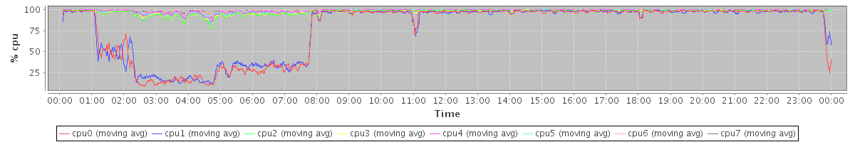 avg(cpu0) = 0.62 avg(cpu1) = 0.62 avg(cpu2) = 0.30 avg(cpu3) = 0.28 avg(cpu4) = 0.15 avg(cpu5) = 0.16 avg(cpu6) = 0.08 avg(cpu7) = 0.11