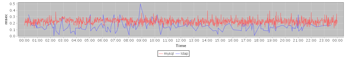 avg(mysql) = 0.23 avg(ldap) = 0.02