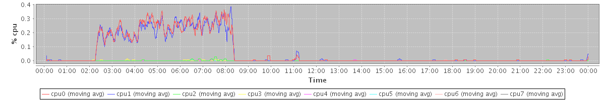 avg(cpu0) = 0.00 avg(cpu1) = 0.01 avg(cpu2) = 0.00 avg(cpu3) = 0.00 avg(cpu4) = 0.00 avg(cpu5) = 0.00 avg(cpu6) = 0.00 avg(cpu7) = 0.00