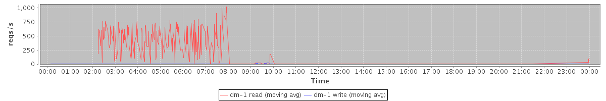 avg(dm-1 read) = 875.24 avg(dm-1 write) = 2.12