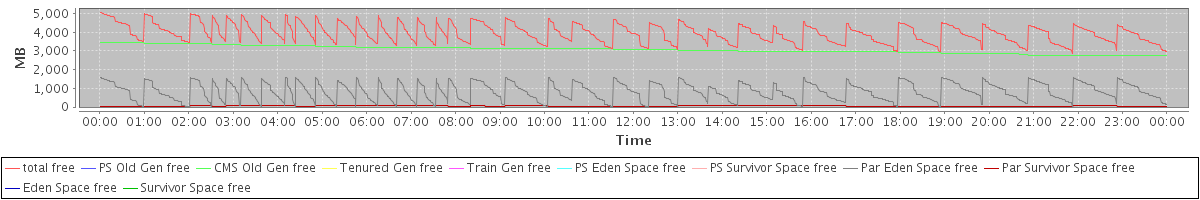 avg(total free) = 3953.59 avg(PS Old Gen free) = 0.00 avg(CMS Old Gen free) = 3074.14 avg(Tenured Gen free) = 0.00 avg(Train Gen free) = 0.00 avg(PS Eden Space free) = 0.00 avg(PS Survivor Space free) = 0.00 avg(Par Eden Space free) = 825.37 avg(Par Survivor Space free) = 54.08 avg(Eden Space free) = 0.00 avg(Survivor Space free) = 0.00