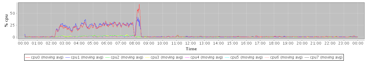 avg(cpu0) = 0.45 avg(cpu1) = 0.46 avg(cpu2) = 0.12 avg(cpu3) = 0.12 avg(cpu4) = 0.08 avg(cpu5) = 0.09 avg(cpu6) = 0.04 avg(cpu7) = 0.05