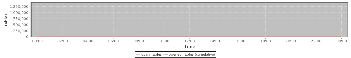 avg(open_tables) = 1174.70 avg(opened_tables (cumulative)) = 1360044.78