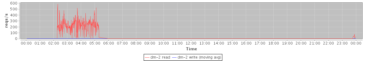 avg(dm-2 read) = 28.77 avg(dm-2 write) = 0.01