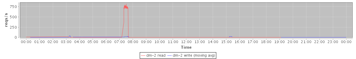 avg(dm-1 read) = 883.37 avg(dm-1 write) = 0.06