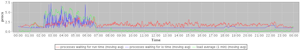 avg(processes waiting for run time) = 1.28 avg(processes waiting for io time) = 0.51 avg(load average (1 min)) = 1.05