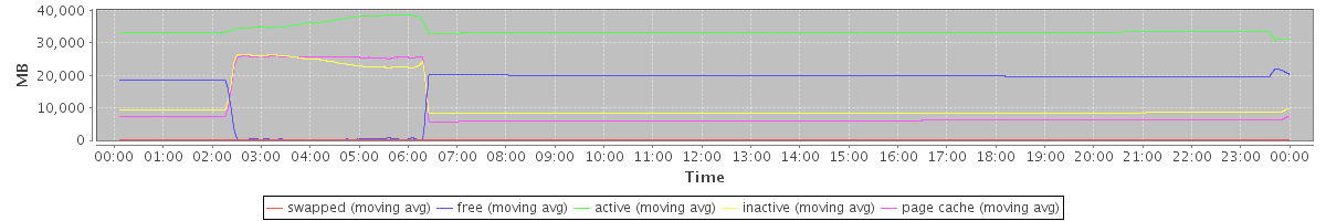 avg(swapped) = 28.14 avg(free) = 16532.27 avg(active) = 33774.05 avg(inactive) = 11150.01 avg(page cache) = 9461.71