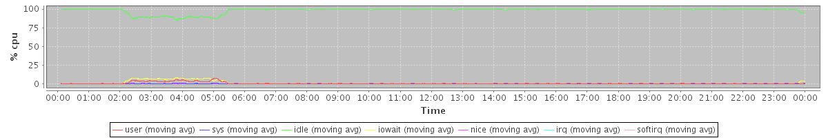 avg(user) = 0.90 avg(sys) = 0.14 avg(idle) = 98.01 avg(iowait) = 0.93 avg(nice) = 0.00 avg(irq) = 0.00 avg(softirq) = 0.00