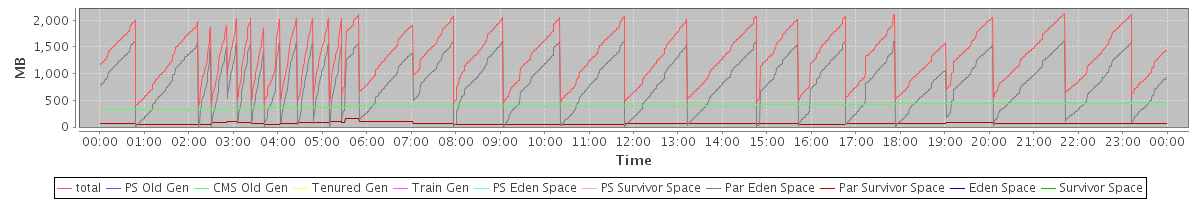 avg(total) = 1307.56 avg(PS Old Gen) = 0.00 avg(CMS Old Gen) = 403.35 avg(Tenured Gen) = 0.00 avg(Train Gen) = 0.00 avg(PS Eden Space) = 0.00 avg(PS Survivor Space) = 0.00 avg(Par Eden Space) = 836.99 avg(Par Survivor Space) = 67.22 avg(Eden Space) = 0.00 avg(Survivor Space) = 0.00