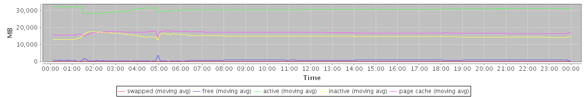 avg(swapped) = 62.07 avg(free) = 810.92 avg(active) = 30623.63 avg(inactive) = 14895.70 avg(page cache) = 16867.95