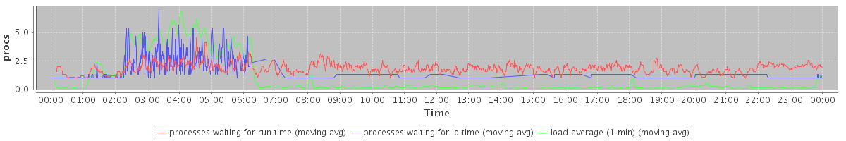 avg(processes waiting for run time) = 1.26 avg(processes waiting for io time) = 0.47 avg(load average (1 min)) = 0.97