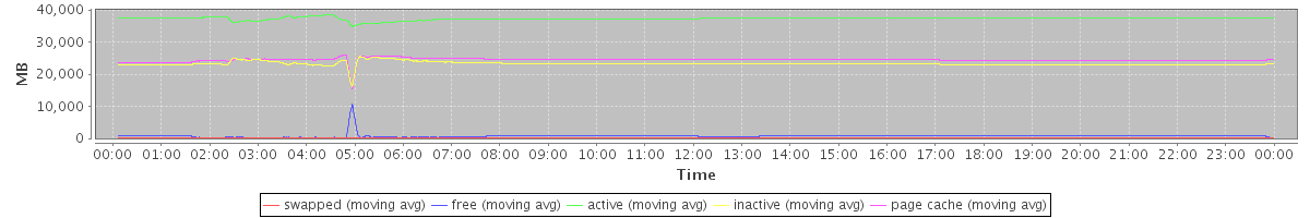 avg(swapped) = 24.55 avg(free) = 756.74 avg(active) = 37225.64 avg(inactive) = 23260.38 avg(page cache) = 24428.68