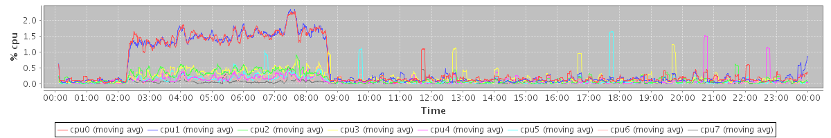 avg(cpu0) = 0.00 avg(cpu1) = 0.01 avg(cpu2) = 0.00 avg(cpu3) = 0.00 avg(cpu4) = 0.00 avg(cpu5) = 0.00 avg(cpu6) = 0.00 avg(cpu7) = 0.00