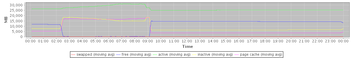 avg(swapped) = 61.94 avg(free) = 10221.46 avg(active) = 26482.27 avg(inactive) = 9495.61 avg(page cache) = 7612.16