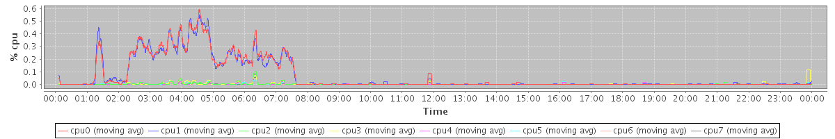 avg(cpu0) = 0.57 avg(cpu1) = 0.59 avg(cpu2) = 0.28 avg(cpu3) = 0.29 avg(cpu4) = 0.13 avg(cpu5) = 0.15 avg(cpu6) = 0.08 avg(cpu7) = 0.10