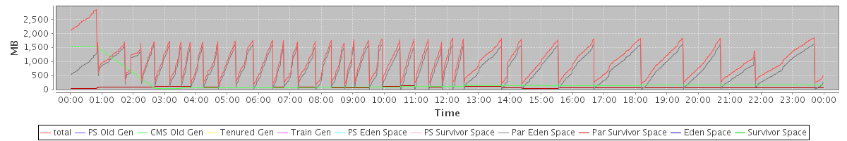 avg(total) = 1035.37 avg(PS Old Gen) = 0.00 avg(CMS Old Gen) = 157.35 avg(Tenured Gen) = 0.00 avg(Train Gen) = 0.00 avg(PS Eden Space) = 0.00 avg(PS Survivor Space) = 0.00 avg(Par Eden Space) = 800.89 avg(Par Survivor Space) = 77.13 avg(Eden Space) = 0.00 avg(Survivor Space) = 0.00