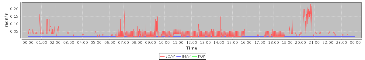 avg(IMAP) = 0.00 avg(IMAP SSL) = 0.00 avg(POP) = 0.00 avg(POP SSL) = 0.00 avg(SOAP sessions) = 0.20
