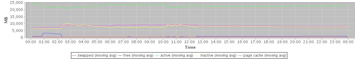 avg(swapped) = 265.48 avg(free) = 724.22 avg(active) = 22735.50 avg(inactive) = 7852.24 avg(page cache) = 8379.87