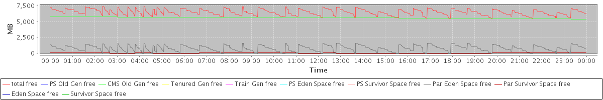 avg(total free) = 6448.49 avg(PS Old Gen free) = 0.00 avg(CMS Old Gen free) = 5569.87 avg(Tenured Gen free) = 0.00 avg(Train Gen free) = 0.00 avg(PS Eden Space free) = 0.00 avg(PS Survivor Space free) = 0.00 avg(Par Eden Space free) = 803.34 avg(Par Survivor Space free) = 75.28 avg(Eden Space free) = 0.00 avg(Survivor Space free) = 0.00