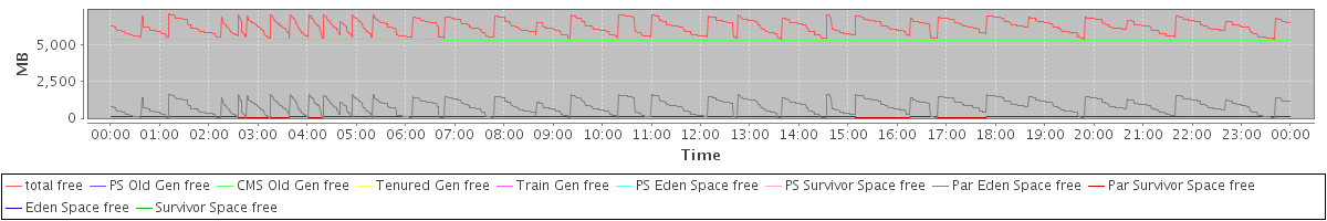 avg(total free) = 6227.50 avg(PS Old Gen free) = 0.00 avg(CMS Old Gen free) = 5313.39 avg(Tenured Gen free) = 0.00 avg(Train Gen free) = 0.00 avg(PS Eden Space free) = 0.00 avg(PS Survivor Space free) = 0.00 avg(Par Eden Space free) = 817.61 avg(Par Survivor Space free) = 96.50 avg(Eden Space free) = 0.00 avg(Survivor Space free) = 0.00