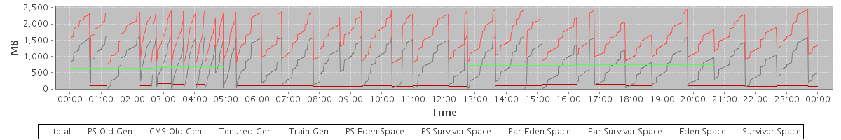 avg(total) = 1599.82 avg(PS Old Gen) = 0.00 avg(CMS Old Gen) = 707.61 avg(Tenured Gen) = 0.00 avg(Train Gen) = 0.00 avg(PS Eden Space) = 0.00 avg(PS Survivor Space) = 0.00 avg(Par Eden Space) = 788.02 avg(Par Survivor Space) = 104.19 avg(Eden Space) = 0.00 avg(Survivor Space) = 0.00