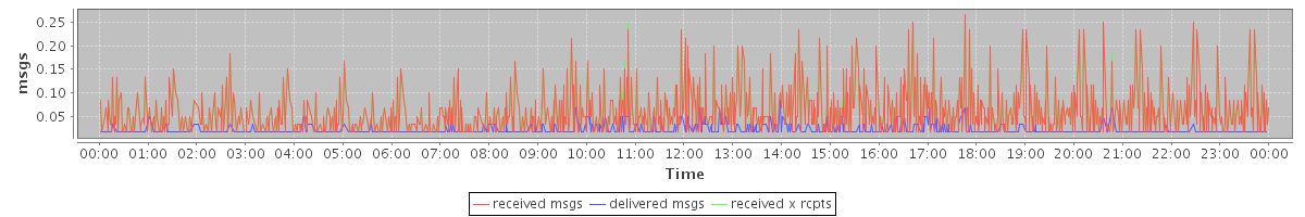 avg(received msgs) = 0.04 avg(delivered msgs) = 0.01 avg(received x rcpts) = 0.04