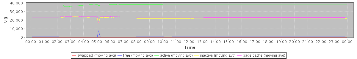 avg(swapped) = 9.31 avg(free) = 807.63 avg(active) = 38260.30 avg(inactive) = 22191.21 avg(page cache) = 23457.76