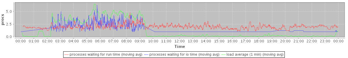 avg(processes waiting for run time) = 1.38 avg(processes waiting for io time) = 0.69 avg(load average (1 min)) = 1.32