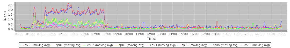 avg(cpu0) = 0.00 avg(cpu1) = 0.00 avg(cpu2) = 0.00 avg(cpu3) = 0.00 avg(cpu4) = 0.00 avg(cpu5) = 0.00 avg(cpu6) = 0.00 avg(cpu7) = 0.00