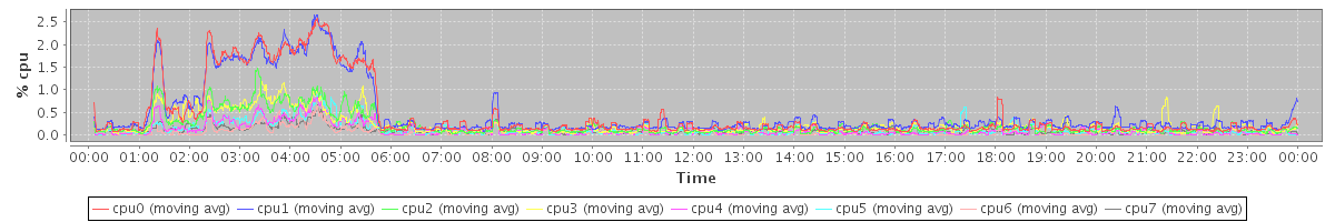 avg(cpu0) = 0.05 avg(cpu1) = 0.05 avg(cpu2) = 0.00 avg(cpu3) = 0.00 avg(cpu4) = 0.00 avg(cpu5) = 0.00 avg(cpu6) = 0.00 avg(cpu7) = 0.00