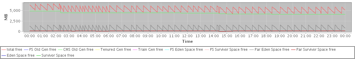 avg(total free) = 5318.74 avg(PS Old Gen free) = 0.00 avg(CMS Old Gen free) = 4358.98 avg(Tenured Gen free) = 0.00 avg(Train Gen free) = 0.00 avg(PS Eden Space free) = 0.00 avg(PS Survivor Space free) = 0.00 avg(Par Eden Space free) = 806.20 avg(Par Survivor Space free) = 153.56 avg(Eden Space free) = 0.00 avg(Survivor Space free) = 0.00