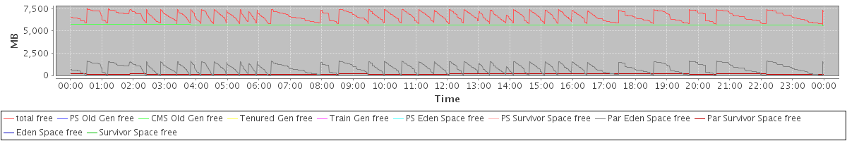 avg(total free) = 6652.32 avg(PS Old Gen free) = 0.00 avg(CMS Old Gen free) = 5675.42 avg(Tenured Gen free) = 0.00 avg(Train Gen free) = 0.00 avg(PS Eden Space free) = 0.00 avg(PS Survivor Space free) = 0.00 avg(Par Eden Space free) = 822.86 avg(Par Survivor Space free) = 154.04 avg(Eden Space free) = 0.00 avg(Survivor Space free) = 0.00