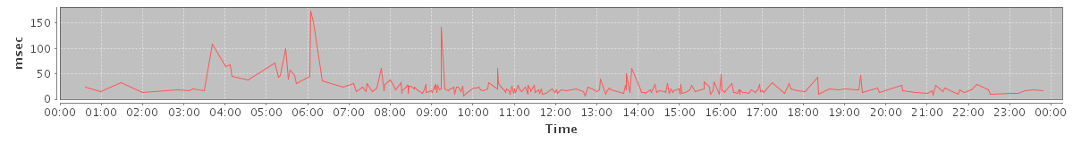avg(BackupQueryRequest) = 423.00 avg(AddAccountAliasRequest) = 106.00 avg(GetAggregateQuotaUsageOnServerRequest) = 1084.00 avg(BackupRequest) = 851.50 avg(GetInfoRequest) = 25.80 avg(GetShareInfoRequest) = 30.00 avg(ModifyCalendarResourceRequest) = 47.25 avg(GetQuotaUsageRequest) = 1119.00 avg(FolderActionRequest.grant) = 23.67 avg(AuthRequest) = 57.25
