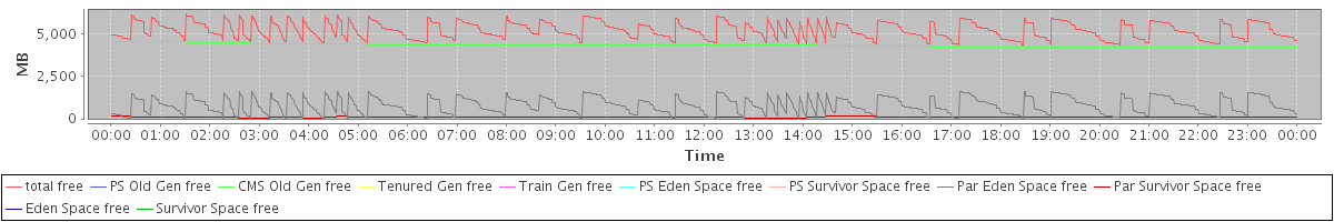 avg(total free) = 5217.63 avg(PS Old Gen free) = 0.00 avg(CMS Old Gen free) = 4343.05 avg(Tenured Gen free) = 0.00 avg(Train Gen free) = 0.00 avg(PS Eden Space free) = 0.00 avg(PS Survivor Space free) = 0.00 avg(Par Eden Space free) = 781.91 avg(Par Survivor Space free) = 92.66 avg(Eden Space free) = 0.00 avg(Survivor Space free) = 0.00