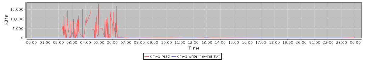 avg(dm-1 read) = 15.70 avg(dm-1 write) = 0.06