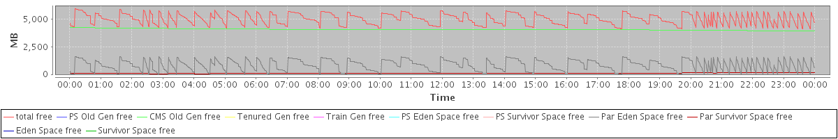 avg(total free) = 5003.38 avg(PS Old Gen free) = 0.00 avg(CMS Old Gen free) = 4060.47 avg(Tenured Gen free) = 0.00 avg(Train Gen free) = 0.00 avg(PS Eden Space free) = 0.00 avg(PS Survivor Space free) = 0.00 avg(Par Eden Space free) = 842.12 avg(Par Survivor Space free) = 100.79 avg(Eden Space free) = 0.00 avg(Survivor Space free) = 0.00