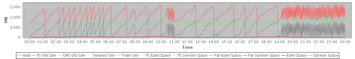 avg(total) = 2347.27 avg(PS Old Gen) = 0.00 avg(CMS Old Gen) = 1504.81 avg(Tenured Gen) = 0.00 avg(Train Gen) = 0.00 avg(PS Eden Space) = 0.00 avg(PS Survivor Space) = 0.00 avg(Par Eden Space) = 804.12 avg(Par Survivor Space) = 38.34 avg(Eden Space) = 0.00 avg(Survivor Space) = 0.00