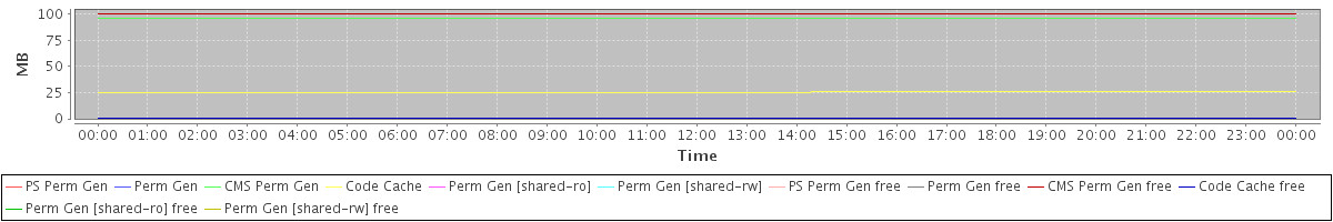avg(PS Perm Gen) = 0.00 avg(Perm Gen) = 0.00 avg(CMS Perm Gen) = 96.04 avg(Code Cache) = 25.41 avg(Perm Gen [shared-ro]) = 0.00 avg(Perm Gen [shared-rw]) = 0.00 avg(PS Perm Gen free) = 0.00 avg(Perm Gen free) = 0.00 avg(CMS Perm Gen free) = 99.96 avg(Code Cache free) = 0.26 avg(Perm Gen [shared-ro] free) = 0.00 avg(Perm Gen [shared-rw] free) = 0.00