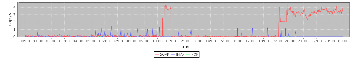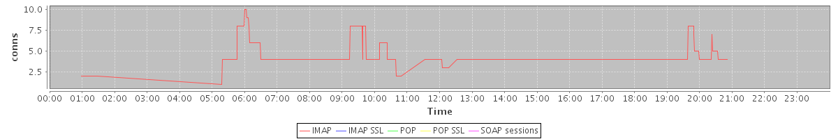 avg(IMAP) = 1.88 avg(IMAP SSL) = 0.00 avg(POP) = 0.00 avg(POP SSL) = 0.00 avg(SOAP sessions) = 0.00