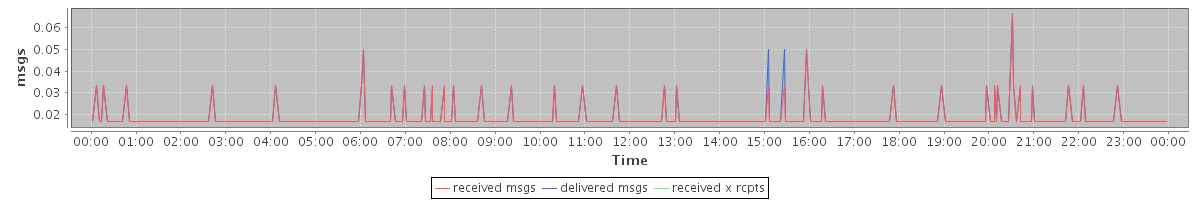 avg(received msgs) = 0.01 avg(delivered msgs) = 0.01 avg(received x rcpts) = 0.01