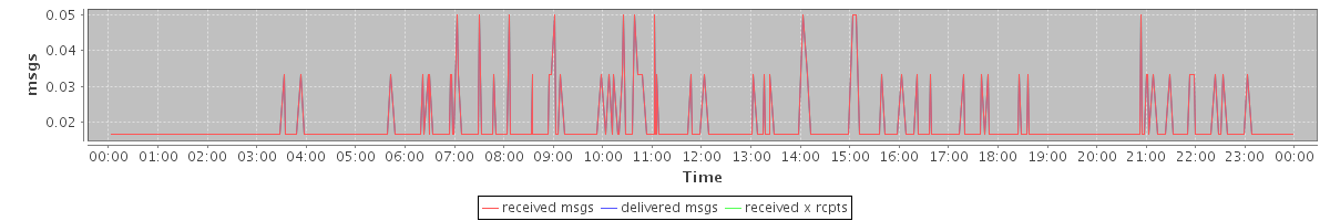 avg(received msgs) = 0.01 avg(delivered msgs) = 0.01 avg(received x rcpts) = 0.01