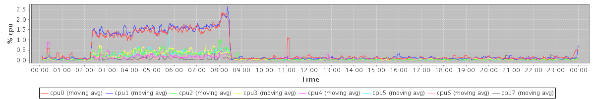 avg(cpu0) = 0.08 avg(cpu1) = 0.06 avg(cpu2) = 0.00 avg(cpu3) = 0.00 avg(cpu4) = 0.00 avg(cpu5) = 0.00 avg(cpu6) = 0.00 avg(cpu7) = 0.00