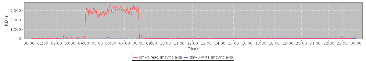 avg(dm-0 read) = 31.94 avg(dm-0 write) = 4.79