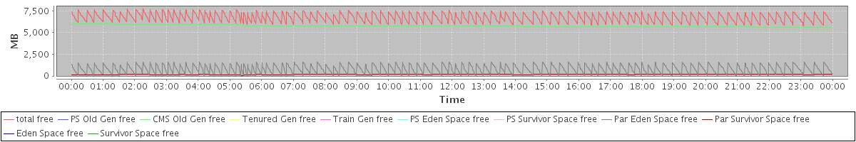 avg(total free) = 6716.21 avg(PS Old Gen free) = 0.00 avg(CMS Old Gen free) = 5753.59 avg(Tenured Gen free) = 0.00 avg(Train Gen free) = 0.00 avg(PS Eden Space free) = 0.00 avg(PS Survivor Space free) = 0.00 avg(Par Eden Space free) = 797.53 avg(Par Survivor Space free) = 165.09 avg(Eden Space free) = 0.00 avg(Survivor Space free) = 0.00