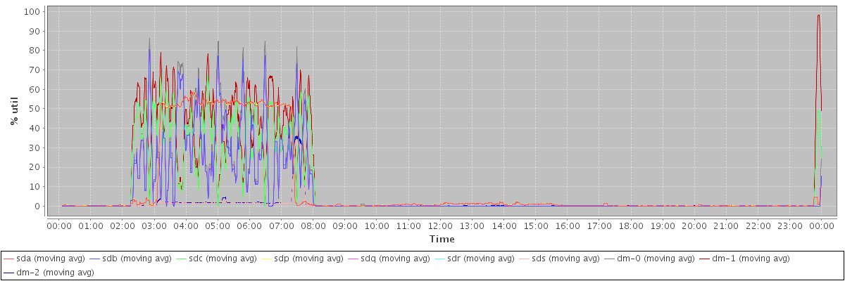avg(sda) = 9.85 avg(sdb) = 7.42 avg(sdc) = 8.82 avg(sdp) = 9.85 avg(sdq) = 7.42 avg(sdr) = 8.82 avg(sds) = 0.74 avg(dm-0) = 8.21 avg(dm-1) = 10.93 avg(dm-2) = 0.84