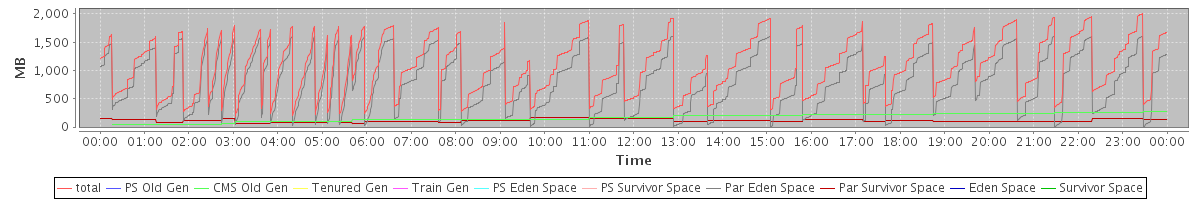 avg(total) = 1081.91 avg(PS Old Gen) = 0.00 avg(CMS Old Gen) = 164.97 avg(Tenured Gen) = 0.00 avg(Train Gen) = 0.00 avg(PS Eden Space) = 0.00 avg(PS Survivor Space) = 0.00 avg(Par Eden Space) = 806.35 avg(Par Survivor Space) = 110.59 avg(Eden Space) = 0.00 avg(Survivor Space) = 0.00