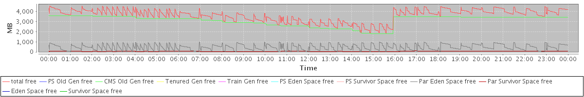 avg(total free) = 3603.41 avg(PS Old Gen free) = 0.00 avg(CMS Old Gen free) = 3094.46 avg(Tenured Gen free) = 0.00 avg(Train Gen free) = 0.00 avg(PS Eden Space free) = 0.00 avg(PS Survivor Space free) = 0.00 avg(Par Eden Space free) = 457.97 avg(Par Survivor Space free) = 50.98 avg(Eden Space free) = 0.00 avg(Survivor Space free) = 0.00